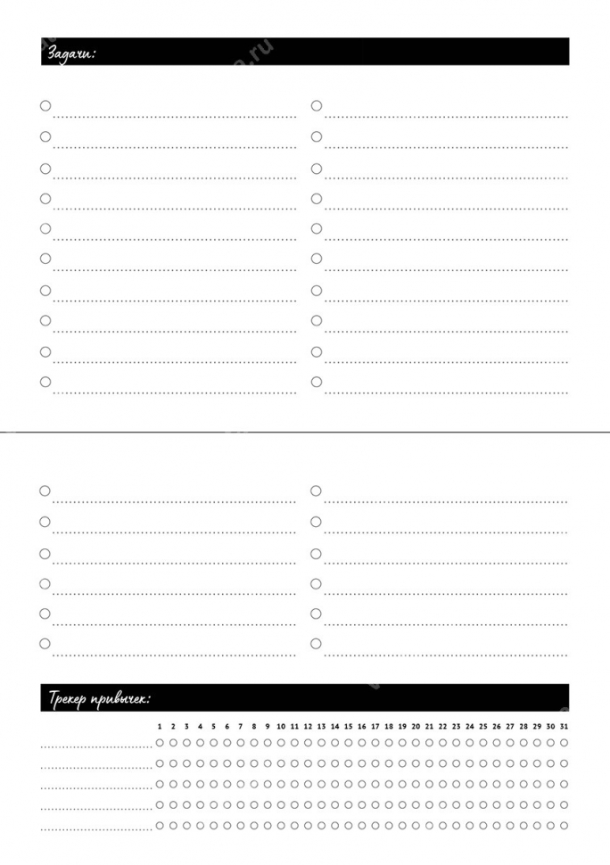 - внутреннее построение: план на месяц, задачи, трекер привычек;