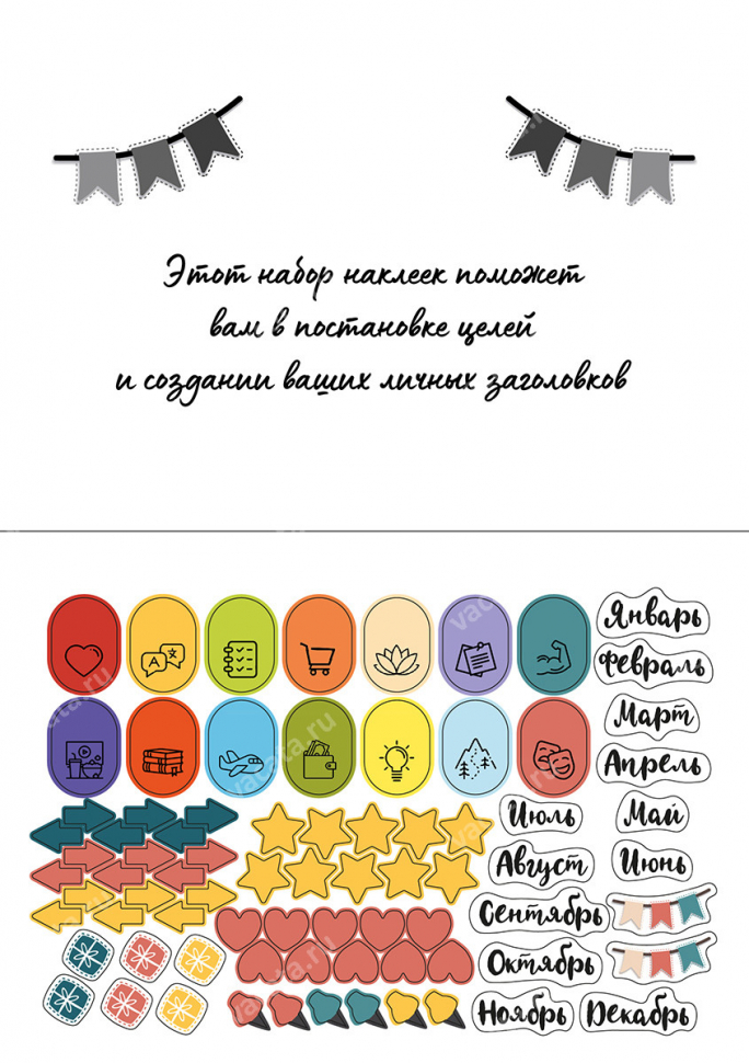 - набор наклеек, который призван помочь в постановке целей и создании личных заголовков.