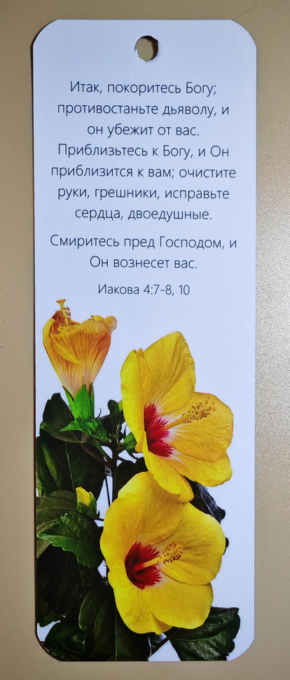 Закладка двусторонняя «Итак, покоритесь Богу» /гибискус/